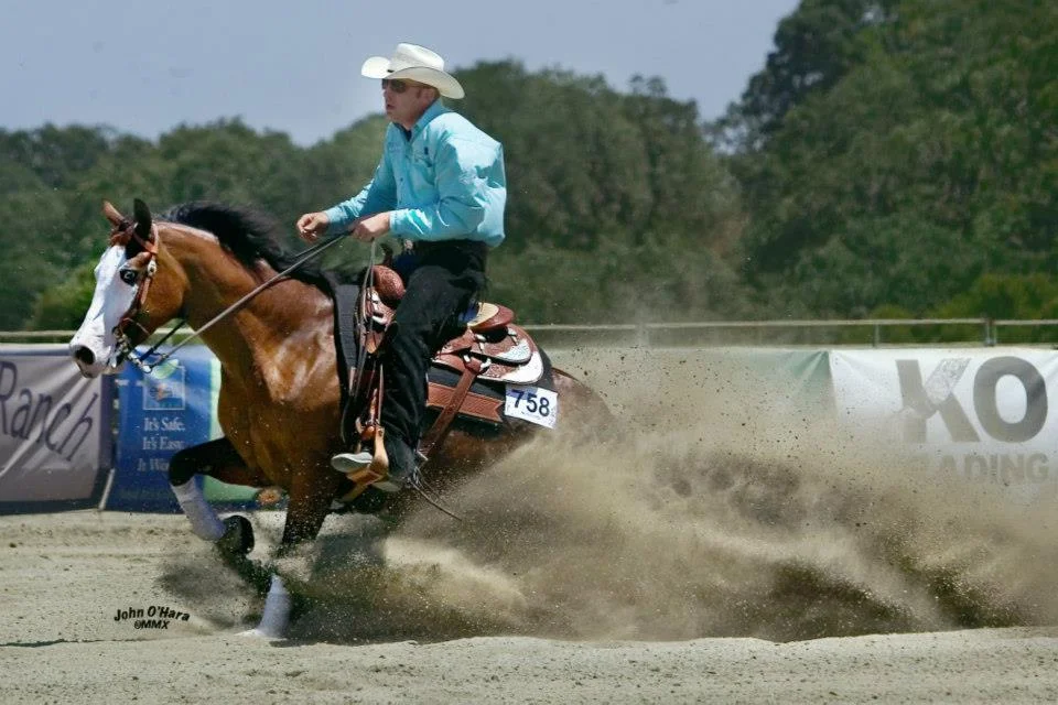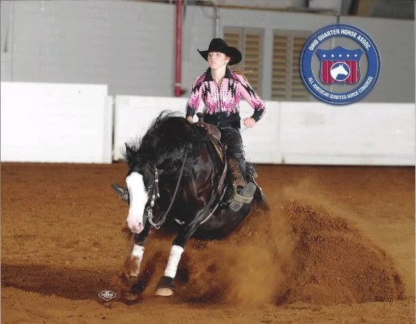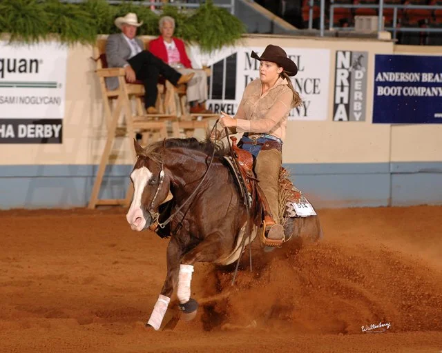 Brett & Showtime competing at the 2014 Quarter Horse Congress in the NRHA Intermediate open and Prime Time, score of 217. The pair also took the Reserve title in the Novice Horse Open.